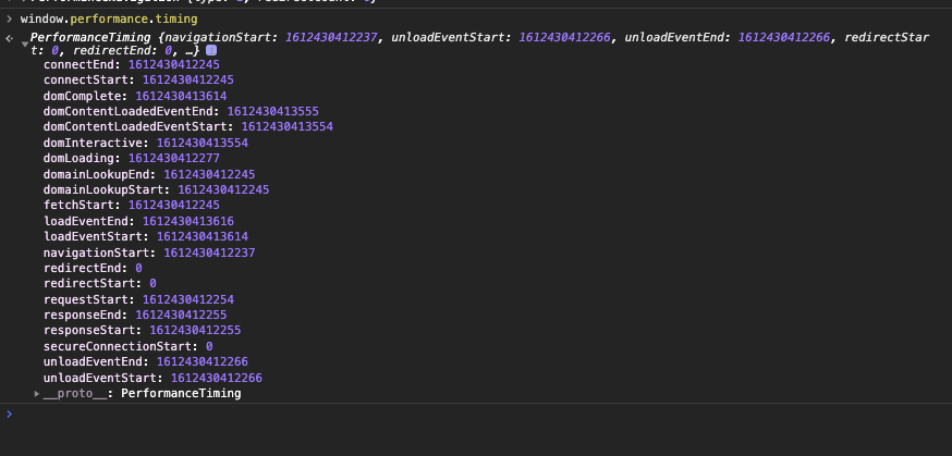 | redirectTime | Page redirection time | redirectEnd - redirectStart | If the current document and the document that is redirected to are not from the same origin, set redirectStart, redirectEnd to 0 |