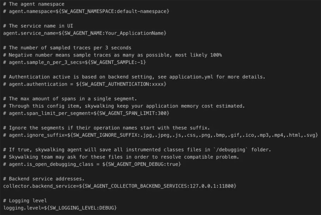 通过了解配置,可以对一个组件功能有一个大致的了解。让我们一起看一下skywalking的相关配置。